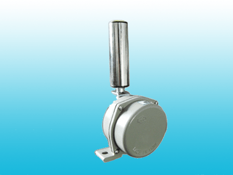 当运行中的胶带发生跑偏时,胶带边缘带动立辊旋转并挤压立辊使之倾斜。若立辊倾斜大于一级动作角度时,立即发出一组开关信号。如立辊倾斜大于二级动作角度时,则输出另一组开关信号,两组开关信号可分别用于告警或停机。胶带机恢复正常运行后,立辊自动复位,动作角度大小通过调整凸轮角度即可实现。