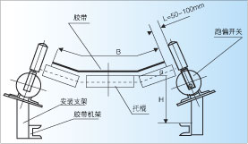 3、胶带位于立辊下端1/3处; 4、每100m胶带可安装跑偏开关一对;详见图2。