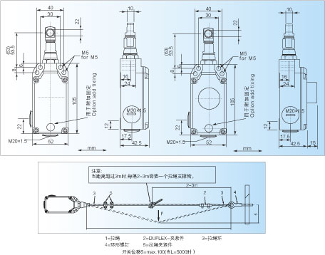 当在机器设备或装备每处都能到达到紧急断电时,便需要安全拉绳开关。由一根预张紧的拉绳可以使得急停开关被操动。