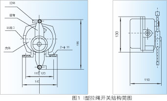 当胶带运输机现场发生紧急事故时,可拉动系于摆臂上的钢丝绳,摆臂旋转而带动机内凸轮并驱动微动开关,发出停机信号。