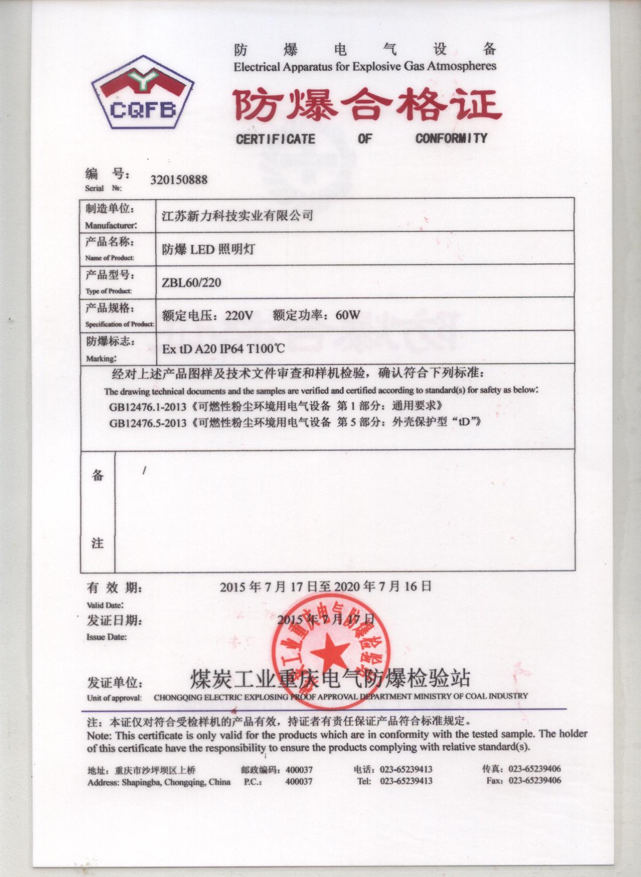 Q/XL05-2014《ZBL系列防爆LED照明灯》。