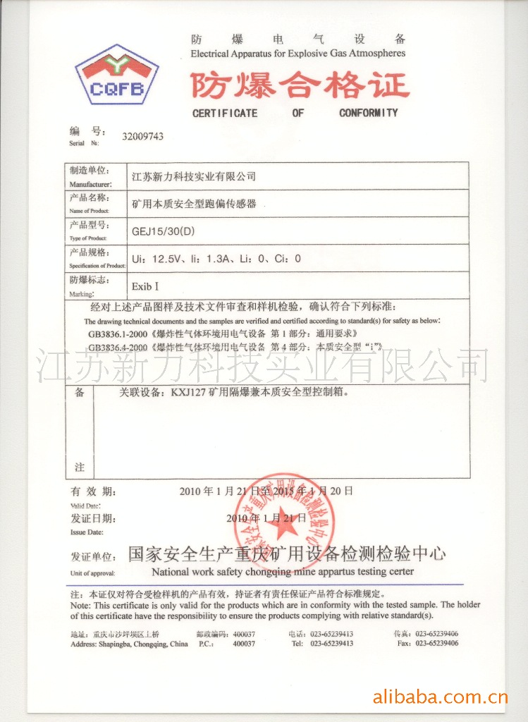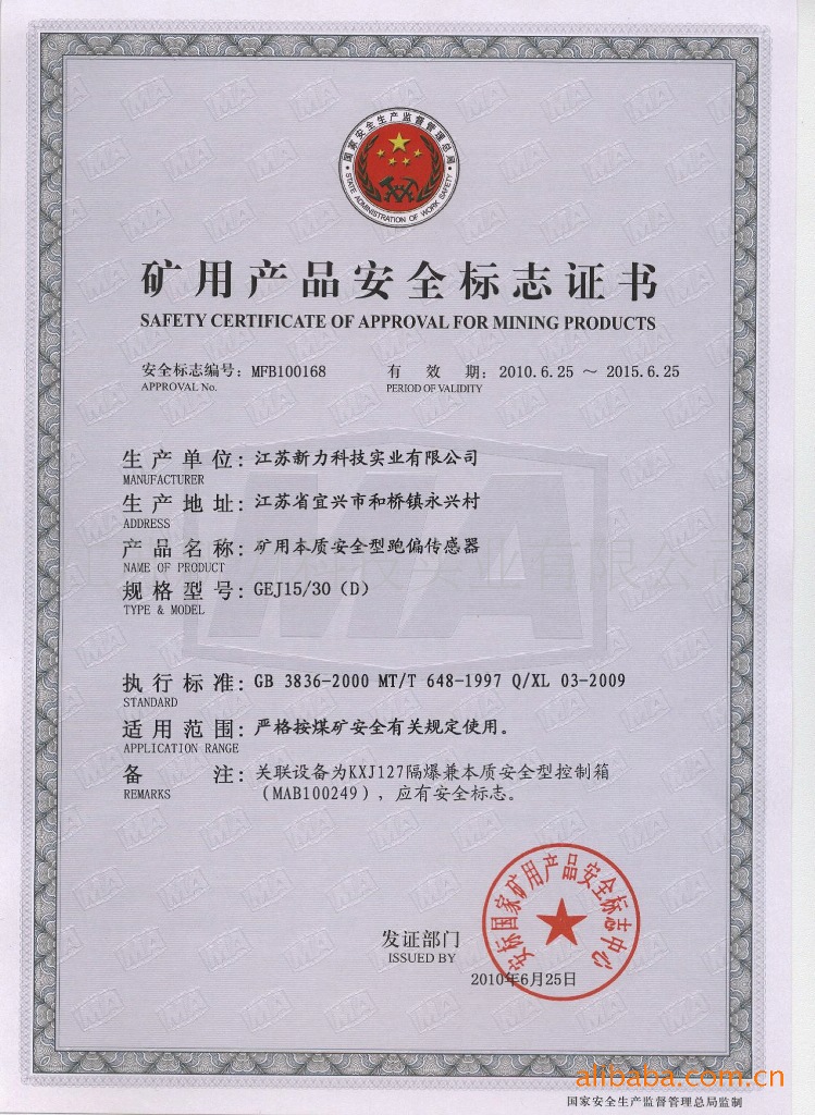GEJ15/30(E)跑偏传感器为矿用本质安全型,适用于煤矿井下有瓦斯、煤尘爆炸性气体的环境中,