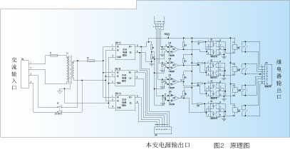 本电源为开关型稳压电源,其输入电压可以是660V或者127V,660V或127V电源经过前端变压器后变成180V,再直接送给本安电源模块,本安电源输出需要的本质安全型电源;同时该电源箱还有4个继电器输出,继电器的控制由外部的高低电位控制。