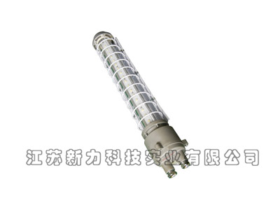 LED灯由左、右盖、壳体及电源、光源、防爆玻璃罩、金属防护罩等部分组成。左盖上设有铭牌。壳体内安有恒压恒流源、接线座。右盖设有电缆引入装置和外接地螺钉。防爆玻璃两端加装隔爆套,并用环氧树脂胶封于一体,再与左盖,壳体相联接,形成隔爆腔;光源连同散热器装在防爆玻璃罩内。光源腔与接线腔,灯具内腔与外界均有符合规定的隔爆接合面隔爆。